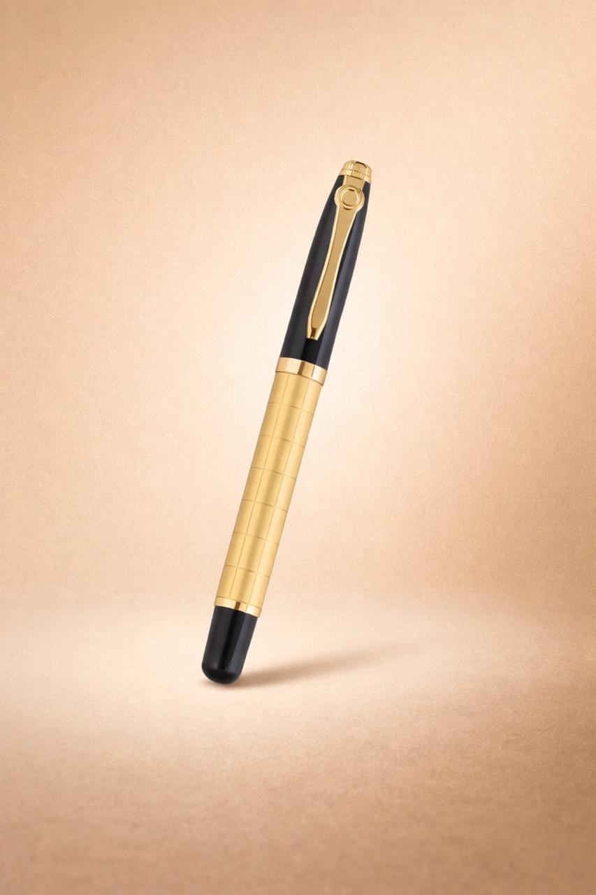 Upgrade your writing experience with the Regal Grid Gold Pen, a perfect blend of luxury, precision, and modern design. Featuring a premium textured gold body with a sleek black finish, this pen is designed to make every signature feel powerful.