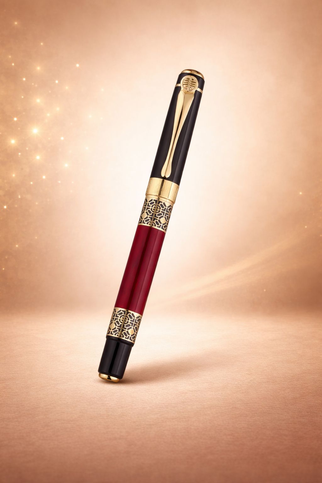 Add a touch of royalty to your writing with the Royal Crimson Signature Pen. Its rich red body, elegant golden detailing, and sleek black accents create a truly luxurious look that instantly captures attention.