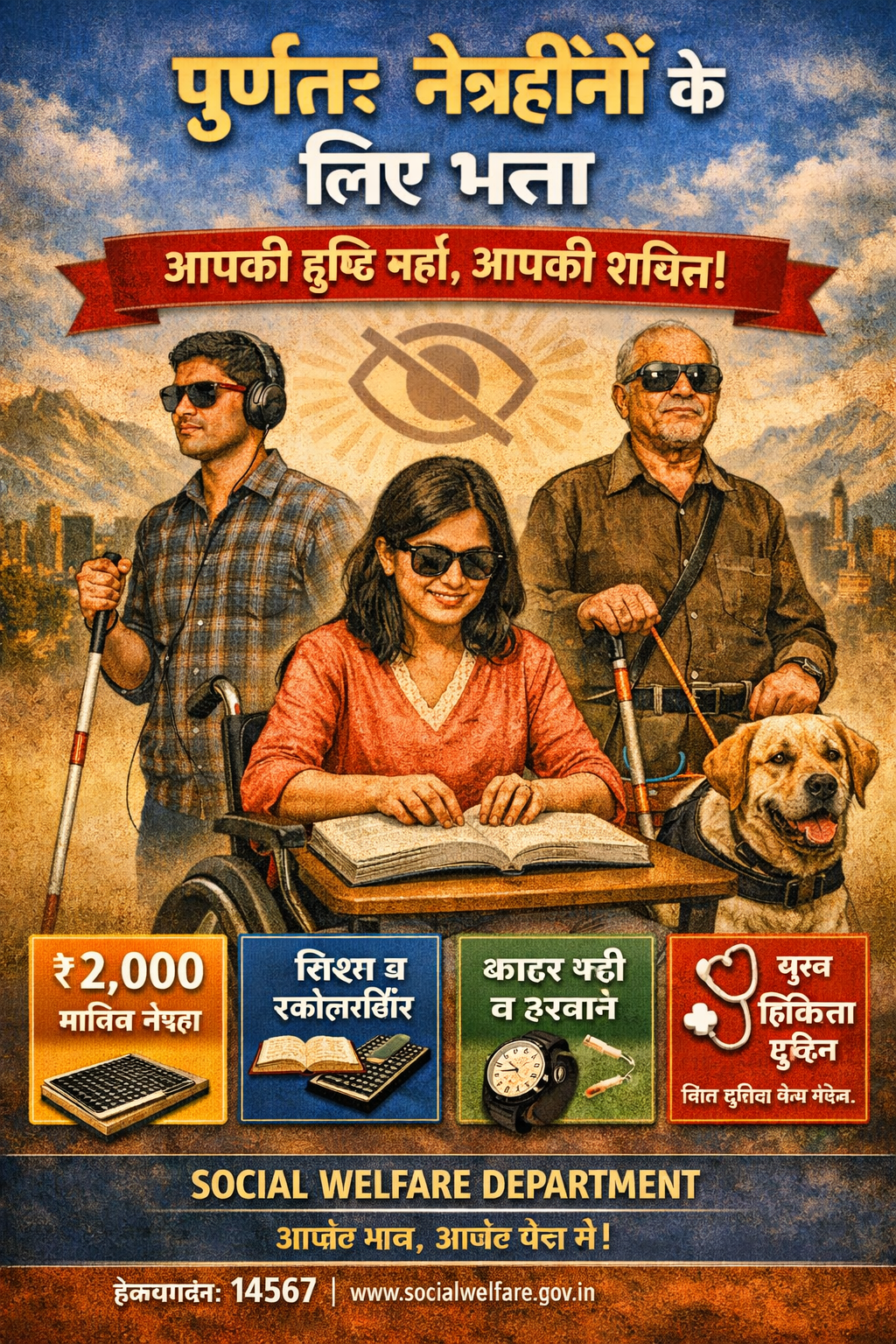 The scheme “Allowance for 100% Blind” is a Pension Scheme launched by the Directorate of Social Welfare and Social Education, Government of Tripura. The scheme aims to provide a monthly pension of ₹2,000/- to the blind persons of Tripura aged 10 years and above having 100% blindness. The application should be submitted to the nearest Child Development Project Officer (CDPO).