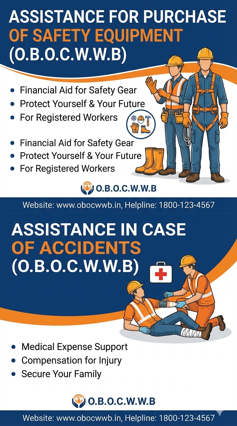 The “Assistance in Case of Accidents” scheme by the Building and Other Construction Workers Welfare Board, Labour Department, Odisha, is a welfare scheme for the registered workers of the board. Under this scheme, financial assistance shall be provided to the nominee of a registered member in the event of an accident causing the member to suffer a permanent total disability, loss of one limb or eye, or permanent disability without losing two limbs or eyes.