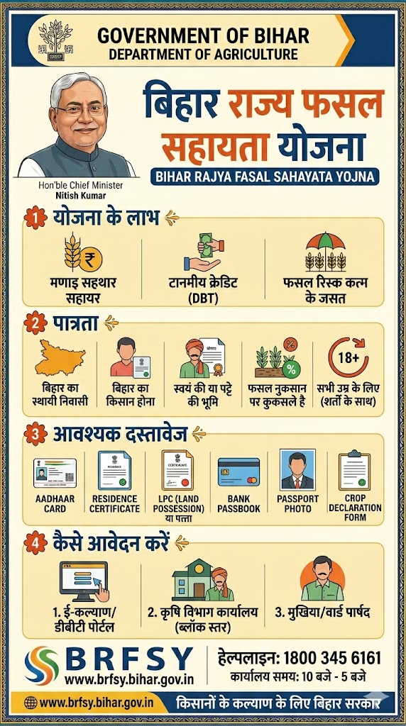Bihar State Crop Assistance Scheme has been started by the State Government of Bihar to protect the crops of farmers cultivating in Bihar from natural calamities such as floods, drought, etc. Is. Under this Bihar State Crop Assistance Scheme, if there is any damage to the farming of farmers due to any natural calamity, then they will be provided financial assistance by the Government of Bihar under the Bihar State Crop Assistance Scheme.