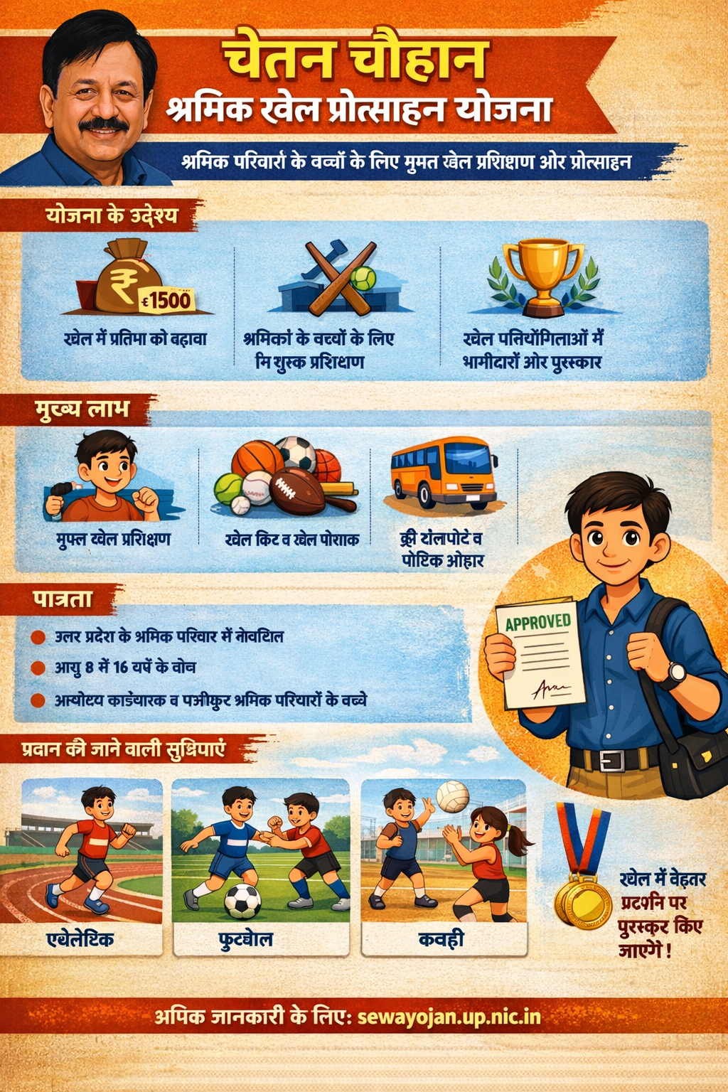 The Chetan Chauhan Shramik Krida Protsahan Yojana (CCSKPY) stands out as a remarkable initiative launched by the Uttar Pradesh government in 2022. Recognizing the potential for sporting talent to blossom even from underprivileged backgrounds, the scheme bridges the financial gap for the children of registered construction workers. By offering a one-time grant, the CCSKPY empowers these young athletes who have excelled at district, state, national, and even international levels. This financial support proves to be a game-changer, allowing them to focus on rigorous training, acquire necessary equipment, and participate in upcoming competitions. The CCSKPY not only fosters a love for sports among these children but also paves the way for them to achieve recognition and success in the sporting arena, etching their names in the history of Indian athletics.