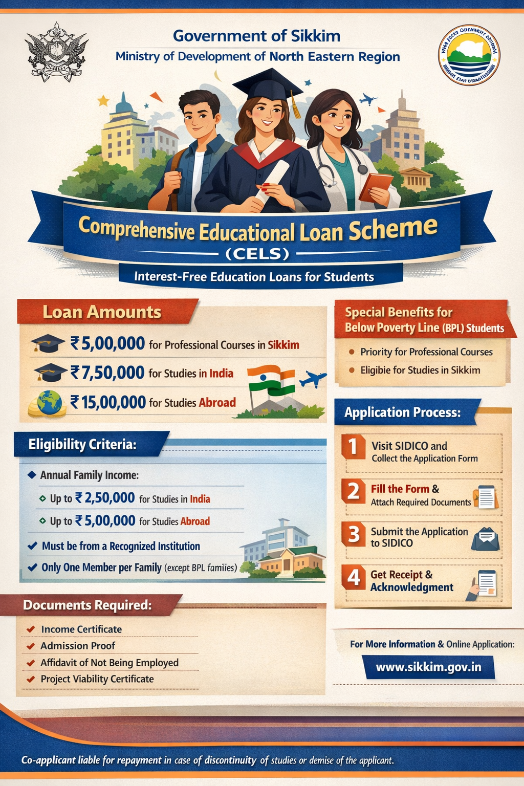 link- https://www.sikkim.gov.in/scheme/scheme-info/30071?Scheme=Comprehensive%20Educational%20Load%20Scheme%20(CELS)
