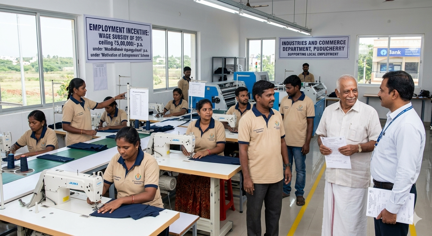 “Employment Incentive” under “Motivation of Entrepreneurs to Start Industries and Fiscal Assistance to Industries – Various Incentives” is a scheme by the Industries and Commerce Department, Union Territory of Puducherry. The scheme came into force with effect from 1st April 2017 and is in operation in the whole of the UT of Puducherry. Through this scheme, Wage/Employment subsidy of 20% wage/salary up to a maximum of ₹5,00,000/- per annum, in case of workers who are covered under Provident Fund (PF), will be granted. The applications are accepted offline in the prescribed form available on the Official Website of the Department.