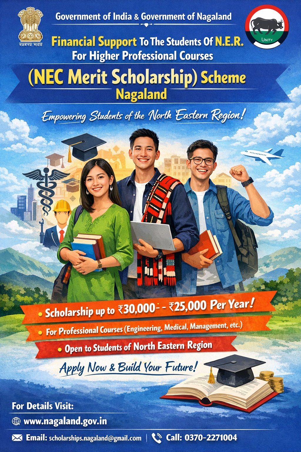 A scholarship scheme by the North Eastern Council (NEC), Ministry of Development of North Eastern Region for the students of the North Eastern States undergoing studies in different disciplines at different levels in Institutions inside as well as outside the North-East but within the country as specified hereinafter. The scholarship under this scheme shall be disbursed only through National Scholarship Portal (NSP). The scholarship shall be admissible to students who get admission in Diploma, Degree, Post-graduate or registration in M.Phil. / Ph.D. courses of any institute recognized by the Government. The grant of scholarship for M.Phil and Ph.D. would be after the registration of the students with the University. The scholarship shall be admissible to the students whose parent/guardian’s annual income from all sources shall not exceed ₹8,00,000.
