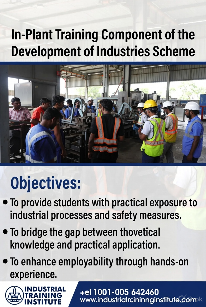 Indicative List of Trades under In-Plant Training: Computer Application, Electrician, Electronics, Composing & Printing, Machinist, Auto Mechanic, A/C Refrigeration, Lab Technician.