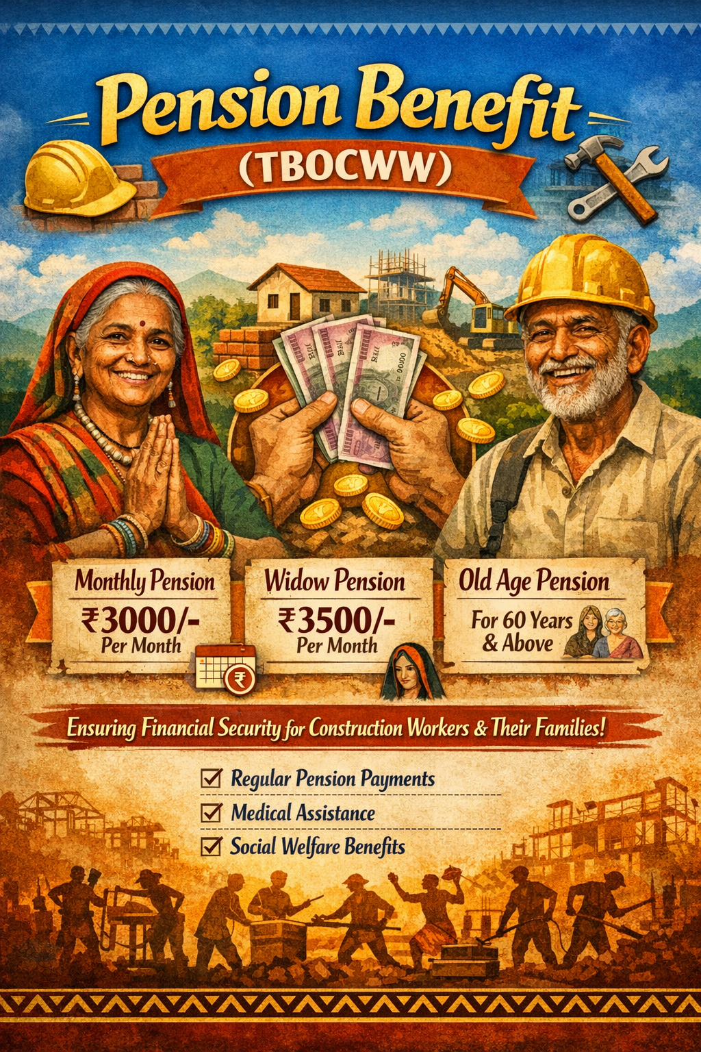 The “Pension Benefit” scheme was launched by the Tripura Building and Other Construction Workers Welfare Board, Labour Department Tripura. The scheme aims to provide financial assistance to the registered beneficiary who has retired due to old age attaining 60 years. The registered beneficiary will apply in the prescribed form through electronically.