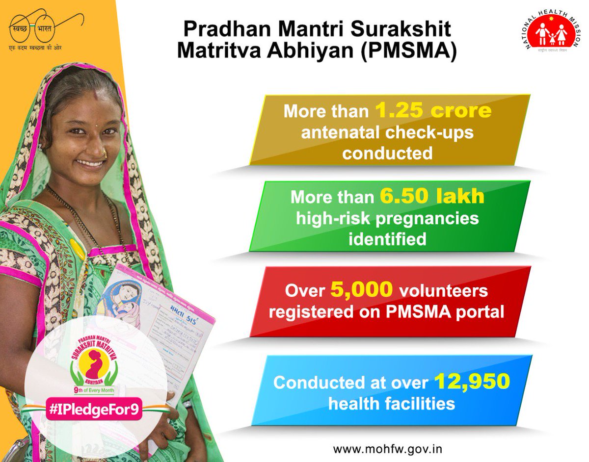 The scheme “Pradhan Mantri Surakshit Matritva Abhiyan” was launched on 9th June 2016 by the Ministry of Health & Family Welfare, Government of India, aims to provide fixed-day assured, comprehensive and quality antenatal care universally to all pregnant women (in 2nd and 3rd trimester) on the 9th of every month, addressing the critical need for standardized maternal healthcare services and reducing maternal and infant mortality rates across the country. The scheme provides assured, comprehensive and quality antenatal care, free of cost, universally to all pregnant women on the 9th of every month and includes a minimum package of antenatal care services provided by Obstetrics and Gynaecology specialists, Radiologists, and Physicians at government health facilities. The applicant must be a pregnant woman in her 2nd or 3rd trimester of pregnancy and must be willing to visit designated government health facilities on the 9th of every month for antenatal care services. The scheme is implemented by the Ministry of Health & Family Welfare, Government of India through National Health Mission at state and district levels and applications for this scheme are accepted both online through the Pradhan Mantri Surakshit Matritva Abhiyan portal and offline at designated government health facilities.