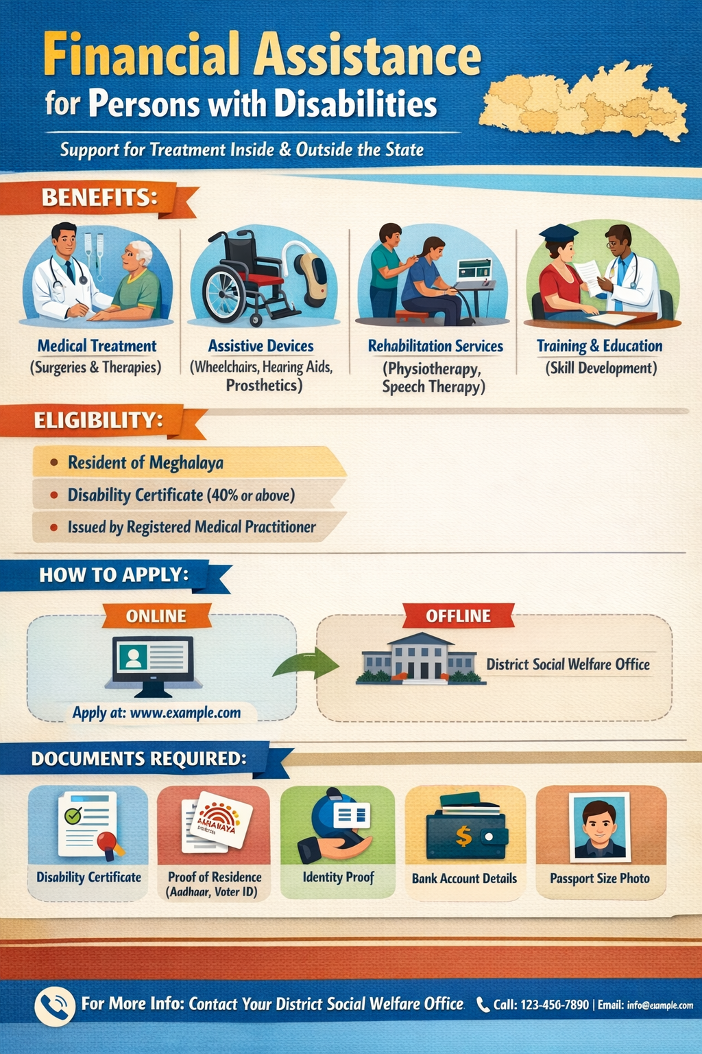 Financial assistance to disabled persons who cannot afford to undergo treatment inside and outside the state.