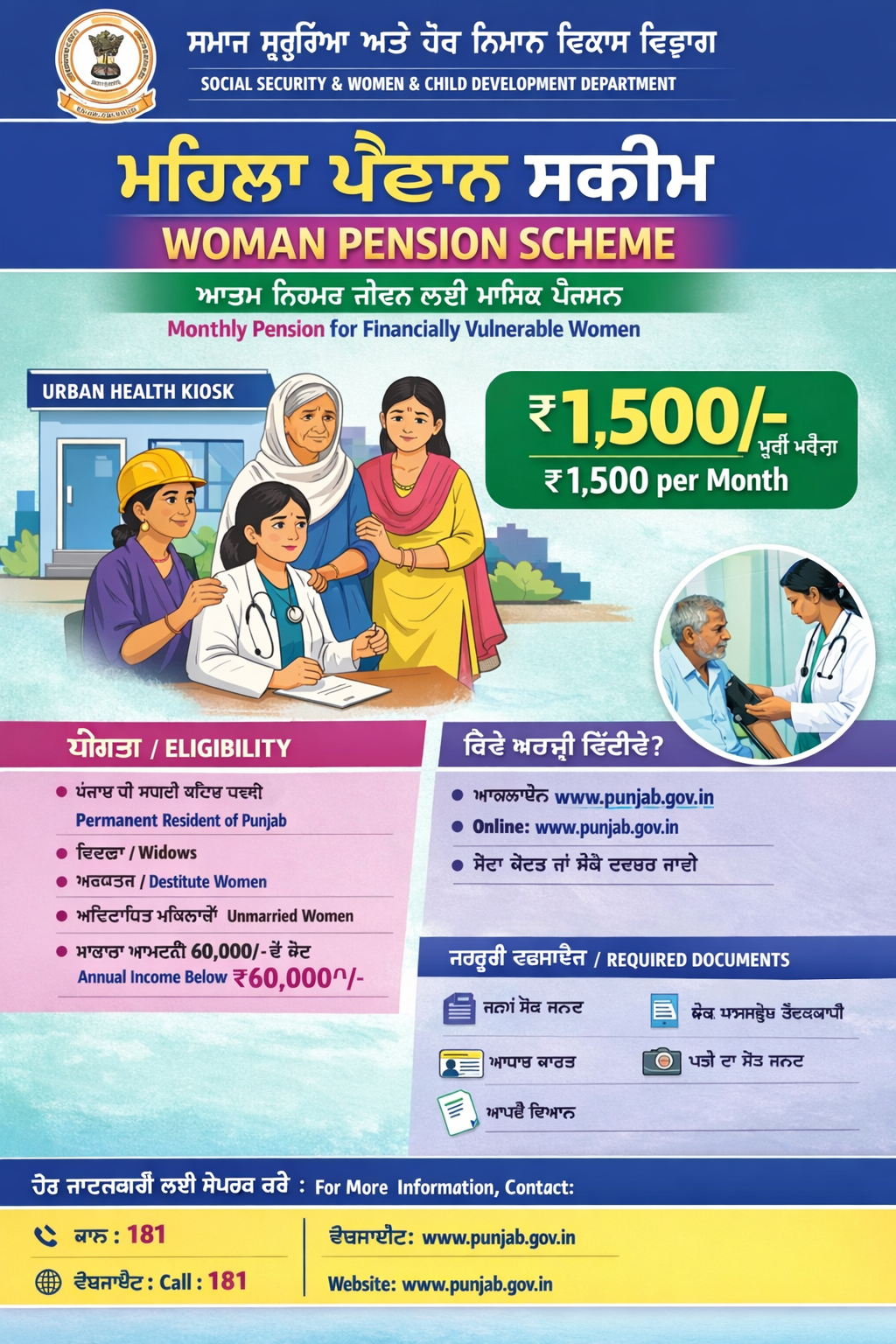 This is the major social welfare scheme of Punjab Government. The main objective behind launching this scheme is to provide monthly pension to those women who don’t have any sustainable income source. This Scheme is implemented by Social Security and Women & Child Development Department of Punjab Government.